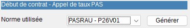 Si le taux de prélèvement à la source et l'identifiant CRM ne sont pas connus, placez-vous sous l'onglet « Début / Fin de contrat », choisissez la bonne norme (P26V01 en 2026) et cliquez sur le bouton Générer.